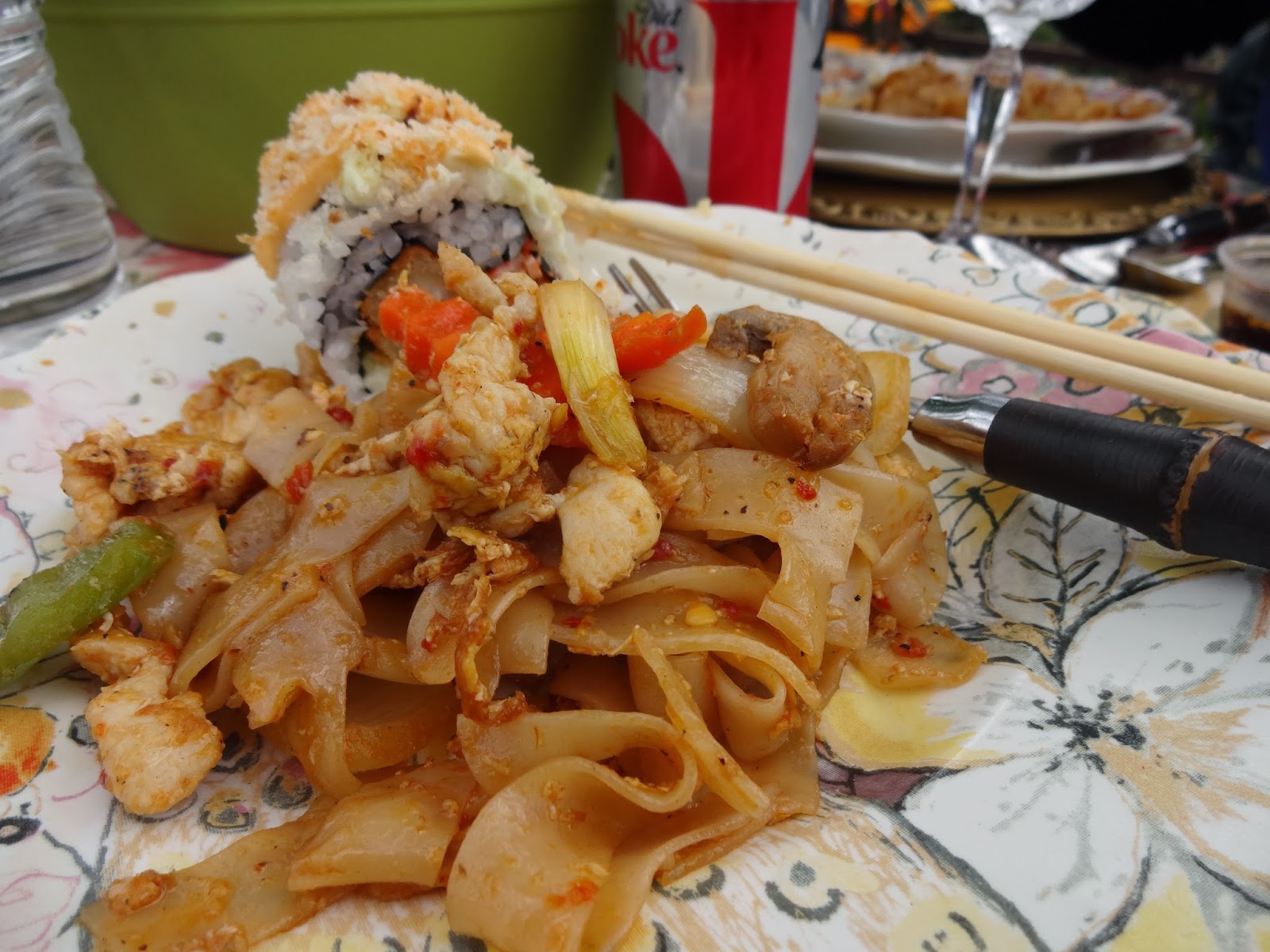 We had Mexican sushi and Chicken basil noodle.