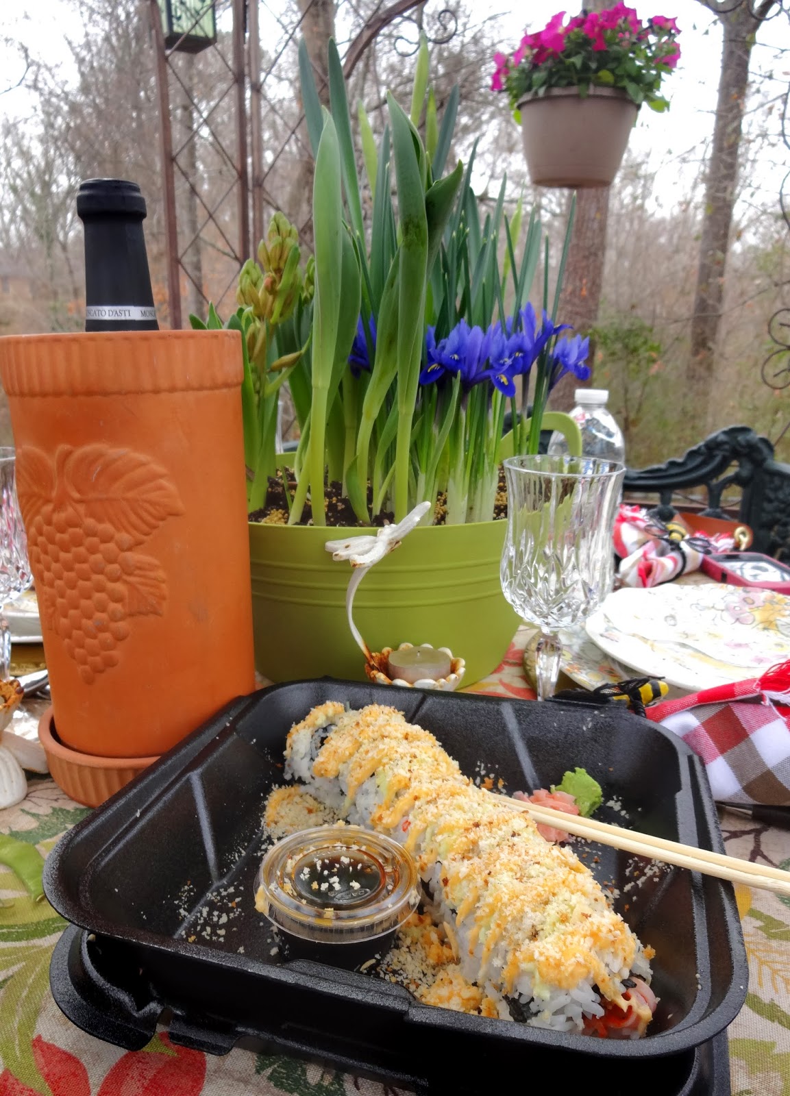 It was a very casual luncheon, kinda like a picnic. I just took some soda cans and a water bottle for our drinks but took out a moscato too, in case anybody was in the mood to drink.